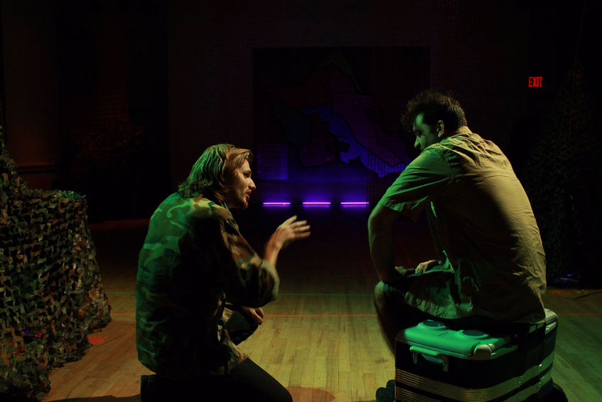 We transformed a Lower East Side dance hall into a surreal hunting paradise, layered with floor-to-ceiling construction netting and a sprawling, mecca-like map of the “island.” The space physically immersed audiences in the story’s world of sport, violence, and moral ambiguity - blurring the lines between entertainment, survival, and ethical consequence.